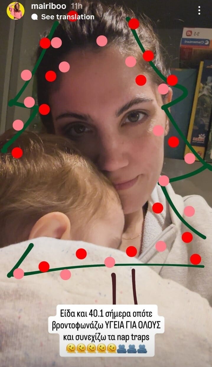 «Είδα και 40,1 σήμερα οπότε βροντοφωνάζω υγεία για όλους και συνεχίζω τα nap traps», έγραψε στην ανάρτηση που έκανε νωρίς το πρωί των Χριστουγέννων με την κορούλα.