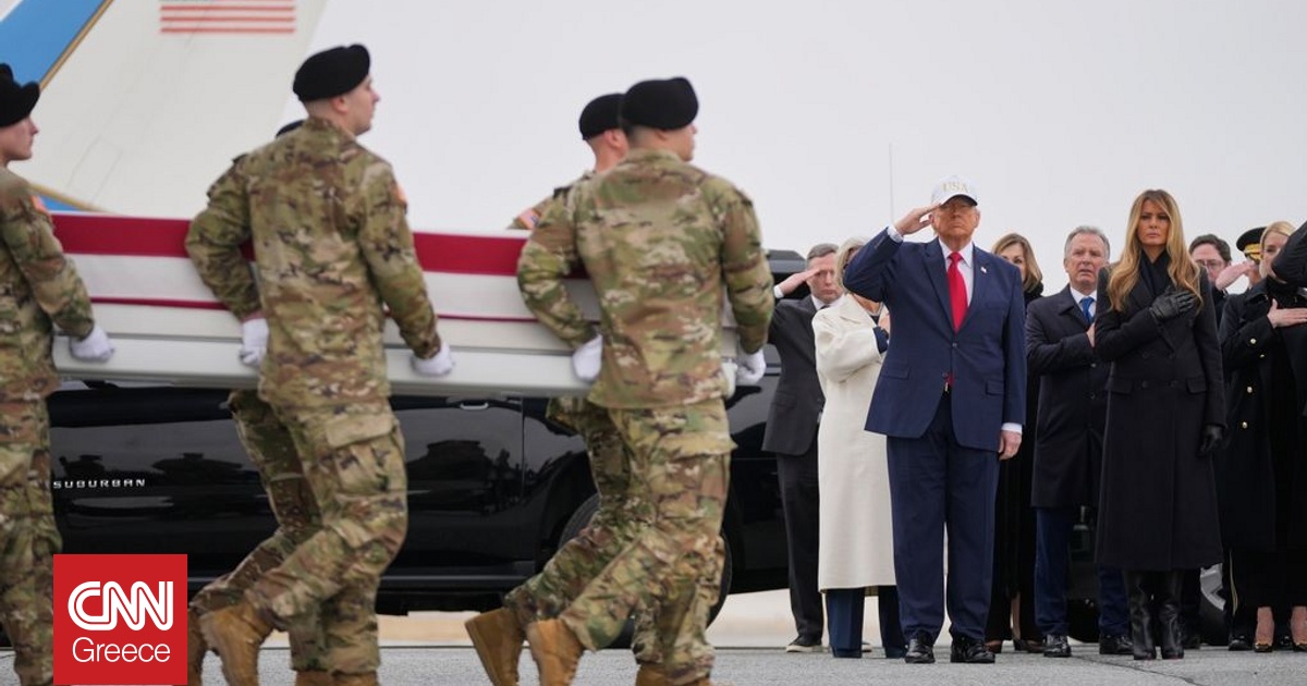 Στην επιστροφή των 6 σορών Αμερικανών στρατιωτών που σκοτώθηκαν όταν ιρανικό drone έπληξε αμερικανική εγκατάσταση στο Κουβέιτ παραβρέθηκε ο Ντόναλντ Τραμπ. Το Air Force One προσγειώθηκε στη βάση του Ντόβερ το μεσημέρι του Σαββάτου για την άφιξη των έξι φερέτρων, τα οποία ήταν καλυμμένα με την αμερικανική σημαία.