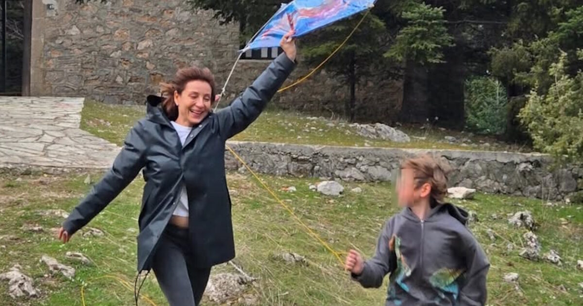 Τη δική της προσπάθεια έκανε με τον γιο της και η Ευδοκία Ρουμελιώτη να πετάξει χαρταετό.