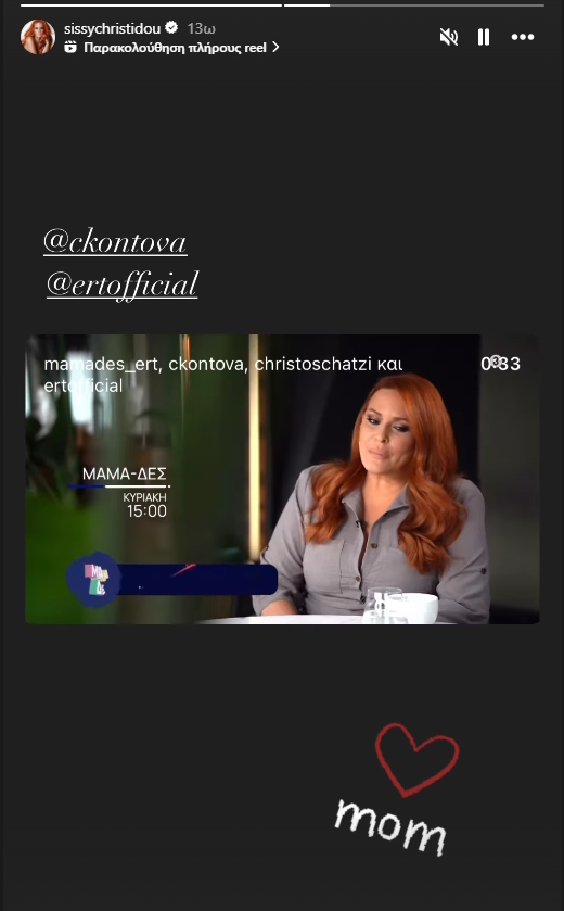 Η Σίσσυ Χρηστίδου θέλησε μάλιστα να τονίσει ότι σε αυτήν τη συνέντευξη δίνει έμφαση στη μητρότητα και έτσι μαζί με το βίντεο δημοσίευσε μία κόκκινη καρδιά και έγραψε τη λέξη «μητέρα».