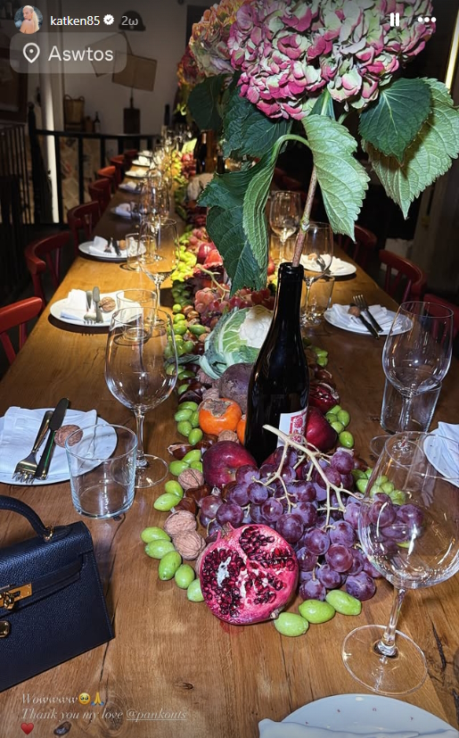 Για την ακρίβεια, ο σύντροφος της Κατερίνας Καινούργιου ετοίμασε στο εστιατόριο που διατηρεί στην Αθήνα ένα υπέροχο εορταστικό τραπέζι για να δειπνήσουν με τους φίλους τους. Μάλιστα το ερωτευμένο ζευγάρι μοιράστηκε υλικό από την ξεχωριστή βραδιά τους στα social media και ταυτόχρονα ο Παναγιώτης Κουτσουμπής ευχήθηκε δημοσίως στη γυναίκα της ζωής του.