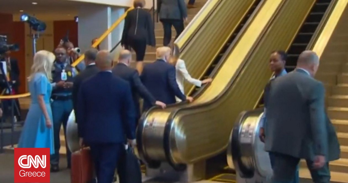 Ο πρόεδρος των ΗΠΑ και η σύζυγός του, Μελάνια, βρέθηκαν σε μια αμήχανη στιγμή κατά την άφιξή τους, καθώς ακριβώς τη στιγμή που ετοιμάζονταν να ανέβουν, η κυλιόμενη σκάλα σταμάτησε ξαφνικά, αναγκάζοντας το ζεύγος Τραμπ να συνεχίσει ανεβαίνοντας τα σκαλοπάτια με τα πόδια.