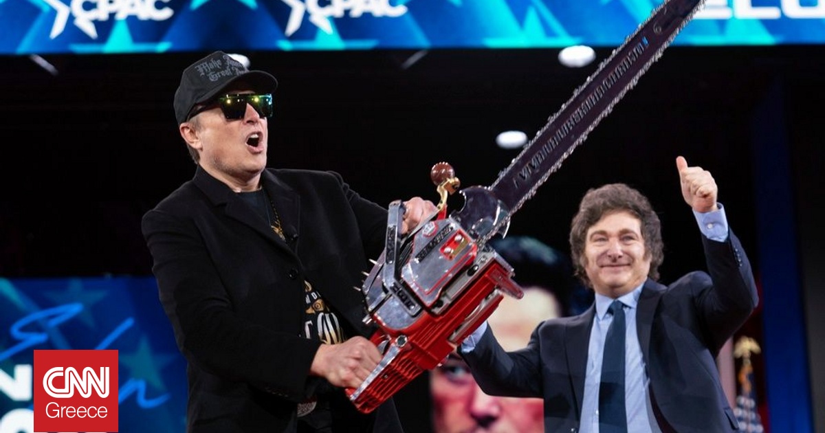 Ο Έλον Μασκ κραδαίνοντας ένα αλυσοπρίονο εμφανίστηκε στη σκηνή που είχε στηθεί στο Συνέδριο της Συντηρητικής Πολιτικής Δράσης, έξω από την Ουάσινγκτον, χθες Πέμπτη (20/02) και μίλησε μεταξύ άλλων για μείωση των δαπανών και για περικοπές του ομοσπονδιακού εργατικού δυναμικού, ενώ κατηγόρησε του Δημοκρατικούς για «προδοσία».