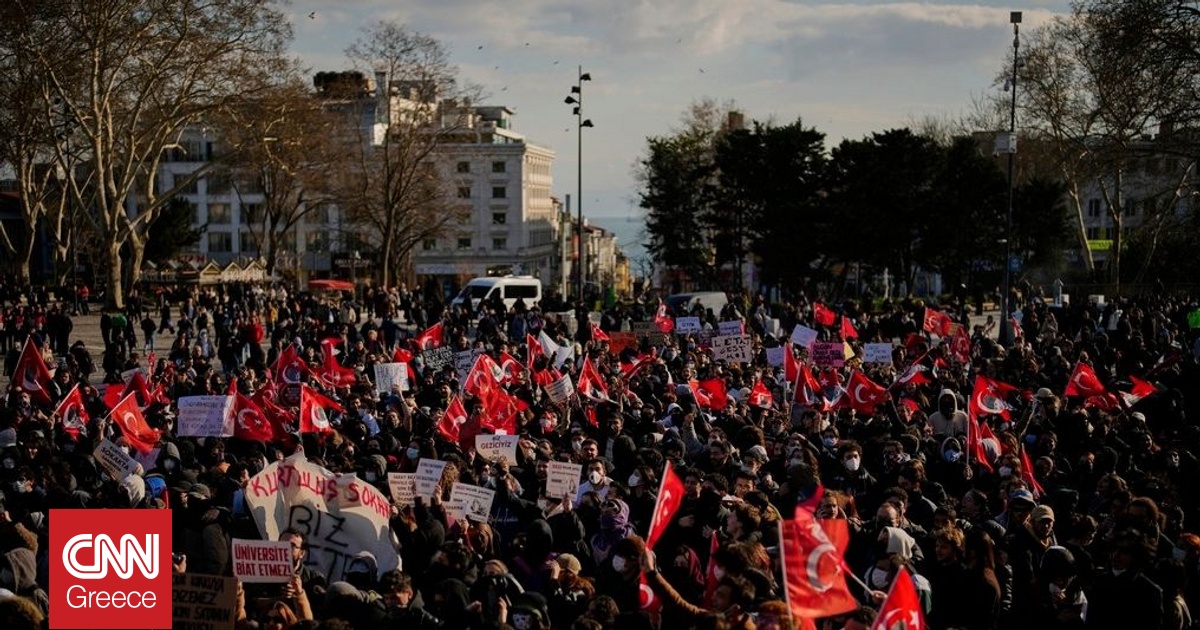 Χιλιάδες διαδηλωτές πολλοί εκ των οποίων νέοι, πραγματοποιούν πορεία προς το δημαρχείο της Κωνσταντινούπολης ανταποκρινόμενοι σε κάλεσμα της αντιπολίτευσης για τη σύλληψη του Εκρέμ Ιμάμογλου.