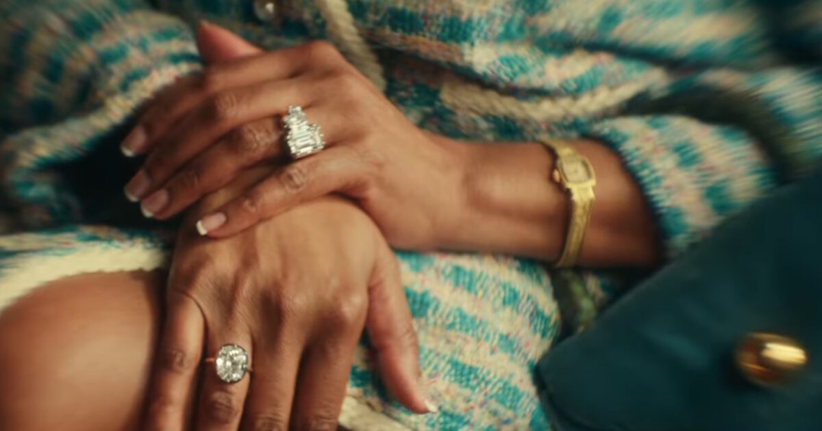 Πρόκειται για ένα διαμάντι 5,02 καρατίων κοπής cushion, που αναδεικνύεται μέσα από ένα εκλεπτυσμένο γεωργιανό στυλ. Τοποθετημένο σε λευκό και κίτρινο χρυσό 18 καρατίων είναι ένα από τα πιο χαρακτηριστικά σχέδια της δημιουργού.