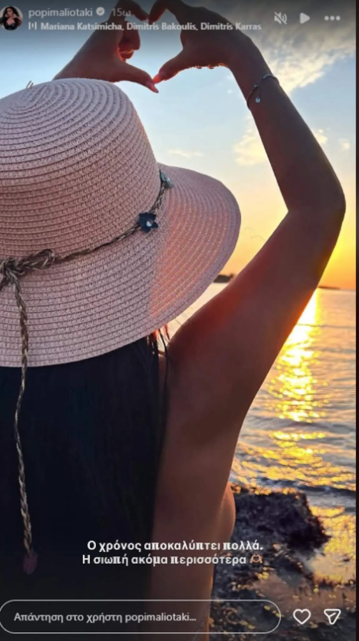 Η Πόπη Μαλλιωτάκη απέφυγε να αναφερθεί στην Αγγελική Ηλιάδη και να κάνει δηλώσεις. Στην πρώτη της ανάρτηση πάντως, επιχείρησε να στείλει ένα μήνυμα τόσο για τις καταγγελίες της τραγουδίστριας, όσο και για τη δική της στάση. «O χρόνος αποκαλύπτει πολλά. Η σιωπή ακόμα περισσότερα» έγραψε στο Instagram.