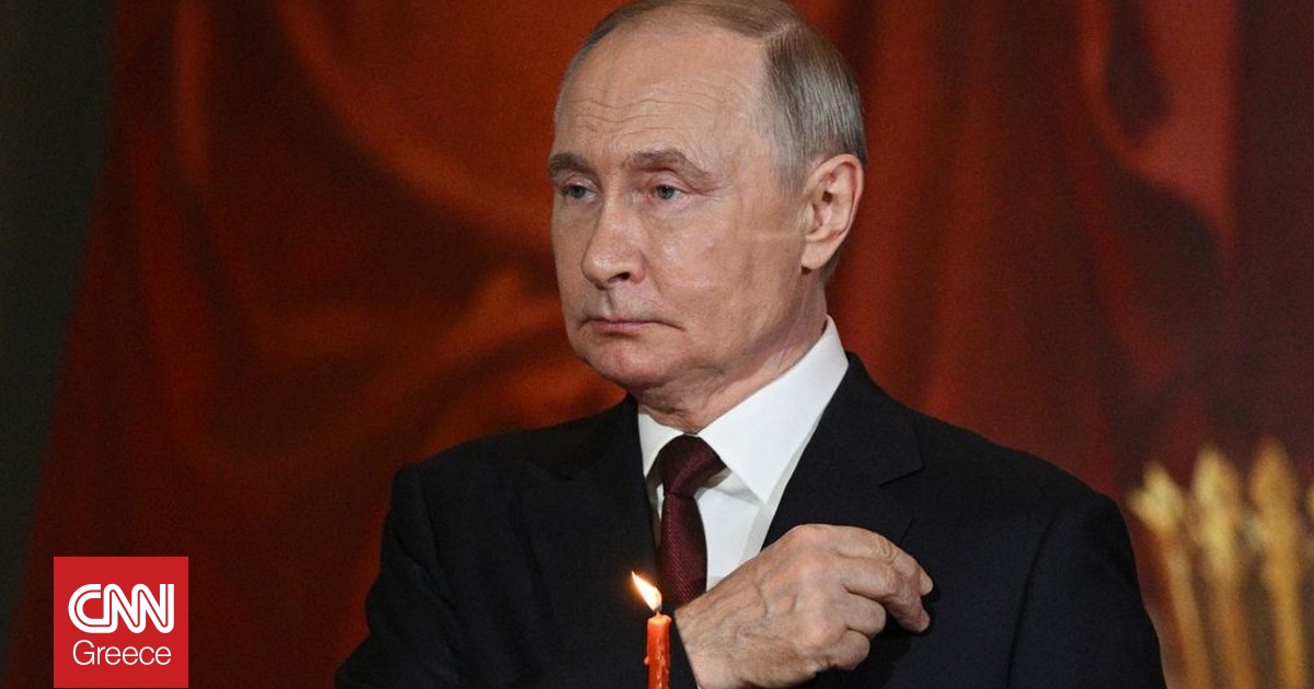 Κρατώντας ένα λεπτό κόκκινο κερί και φορώντας σκούρο κοστούμι, λευκό πουκάμισο και κόκκινη γραβάτα όπως και τις περασμένες χρονιές, ο Ρώσος ηγέτης έκανε αρκετές φορές το σταυρό του όταν ο Κύριλλος είπε το «Χριστός Ανέστη».