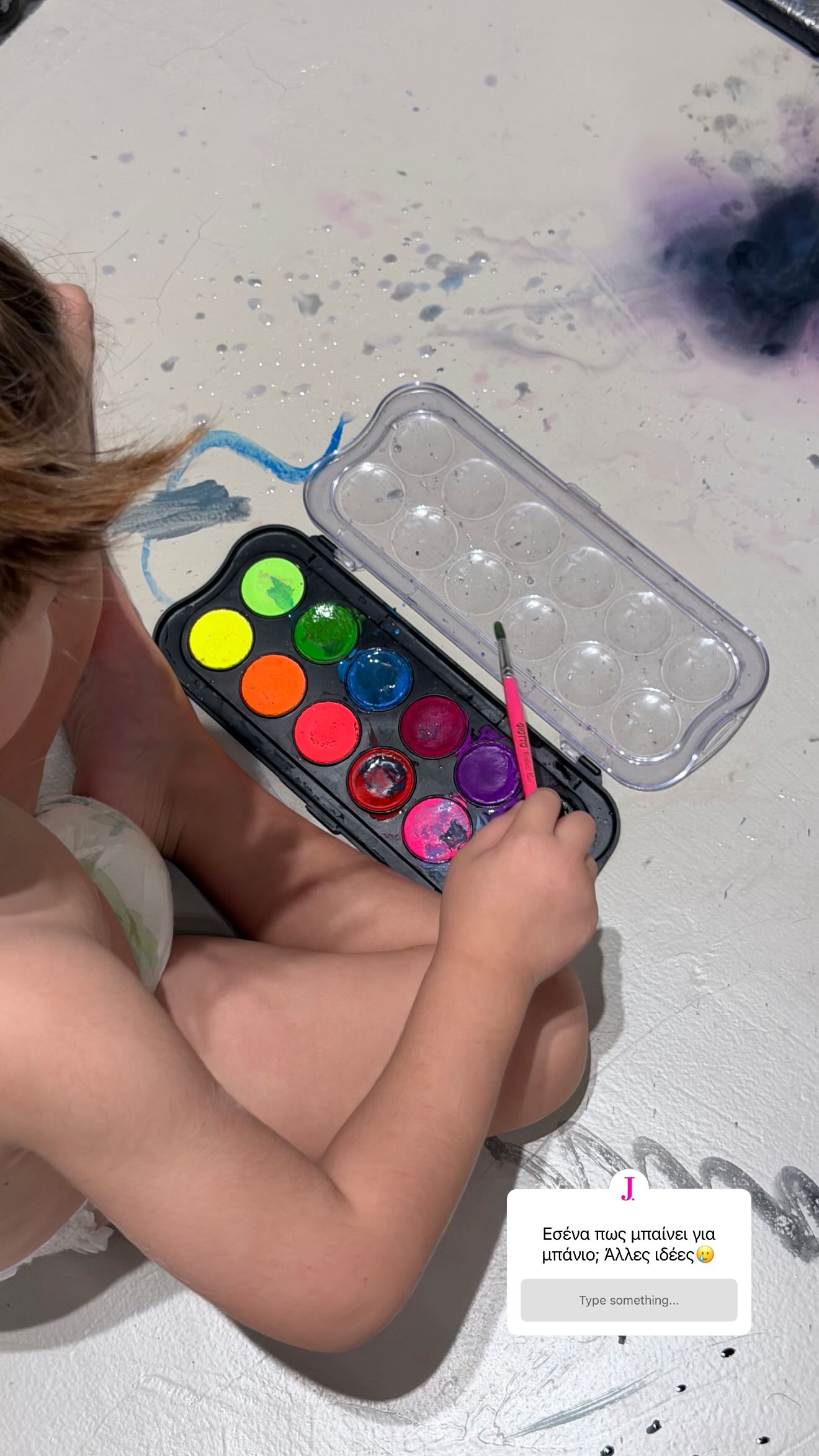 Μέσα από Instagram stories, η Ιωάννα Τούνη έδειξε τον μικρό Πάρη την ώρα που ζωγραφίζει στο πάτωμα, έχοντας μετατρέψει τον χώρο αλλά και τον εαυτό του σε… πίνακα. Τα χρώματα, τα πινέλα και οι ζωγραφιές ήταν ο μόνος τρόπος να τον πείσει να πάνε για μπάνιο.