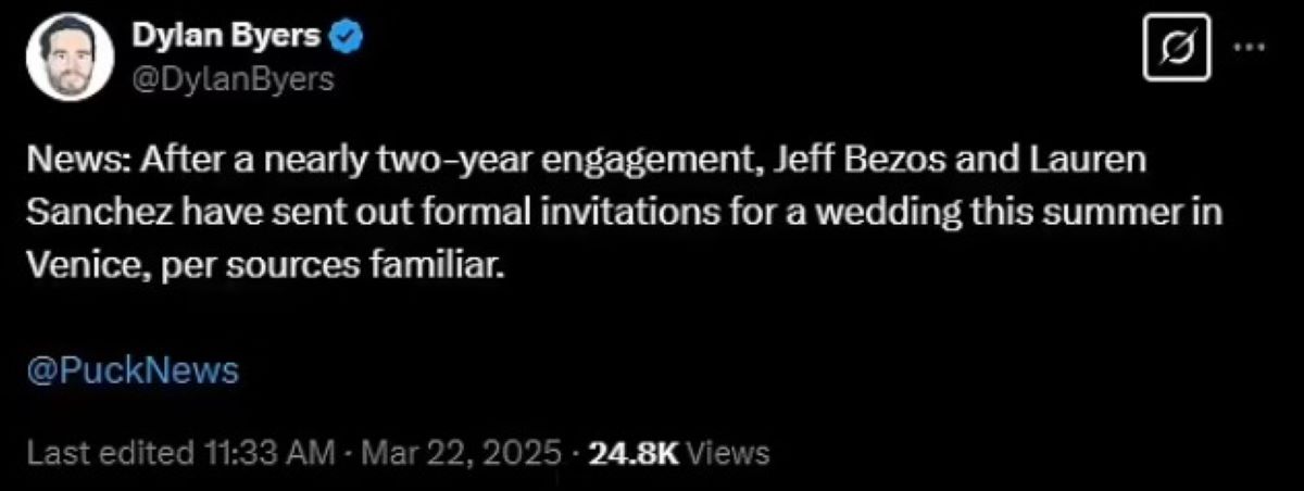 Το γαμήλιο μυστικό αποκάλυψε χθες (22.03.2025) ο Dylan Byers στο X.