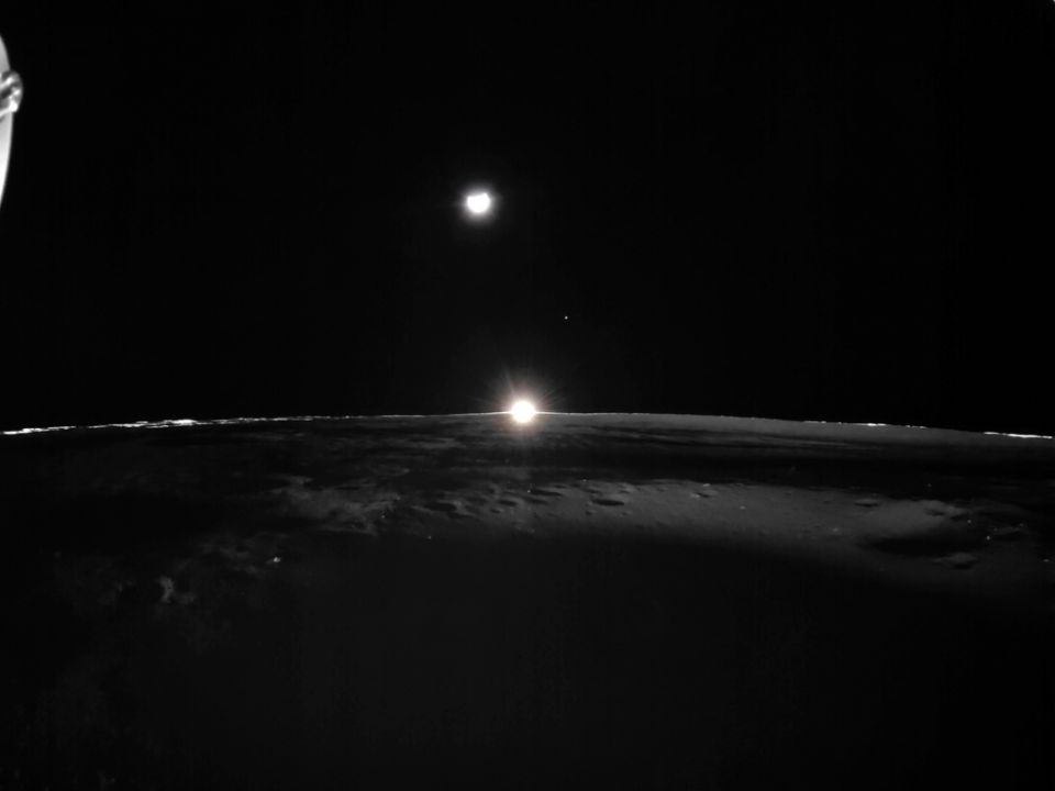 Οι δύο εικόνες, που ελήφθησαν προς τα δυτικά και με τη Γη και την Αφροδίτη επίσης ορατές, δείχνουν την εξάπλωση της λάμψης κατά μήκος του ορίζοντα της Σελήνης, καθώς ο Ήλιος φαίνεται να έχει δύσει κατά το ήμισυ. Η επάνω φωτογραφία προηγείται χρονικά αυτής που ακολουθεί: