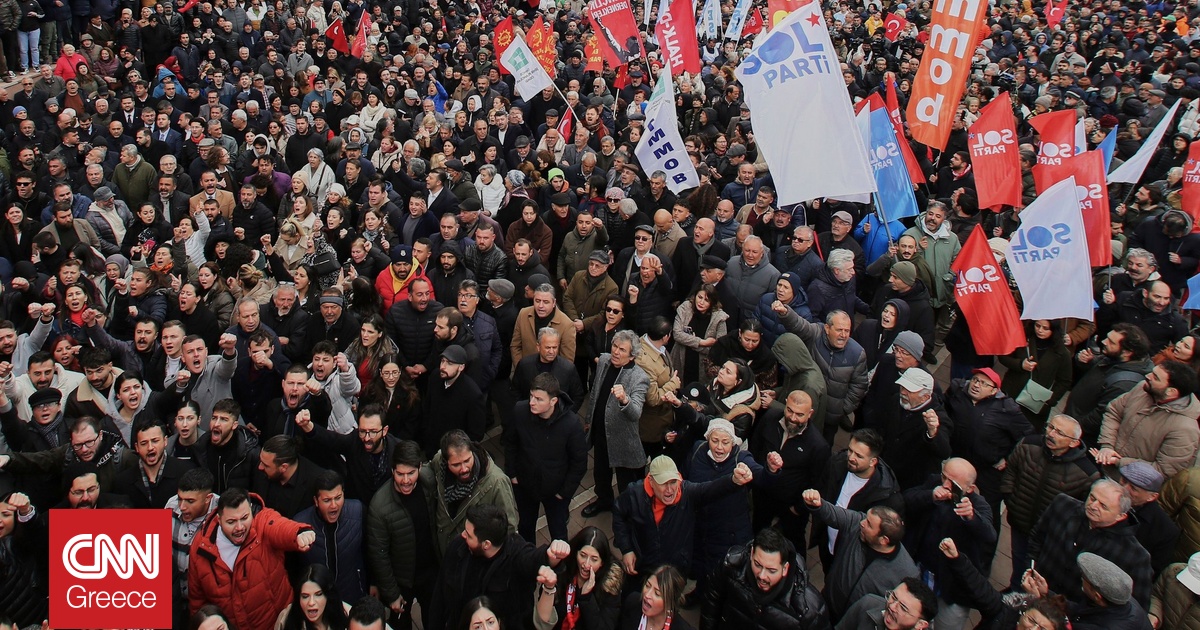 Ο ηγέτης του Ρεπουμπλικανικού Λαϊκού Κόμματος (CHP) Οζγκούρ Οζέλ κάλεσε σε συγκέντρωση εκεί για τρίτη συνεχή βραδιά για να καταγγείλει τη σύλληψη του δημάρχου της πόλης, Εκρέμ Ιμάμογλου, που κατηγορείται για «διαφθορά» και «τρομοκρατία».