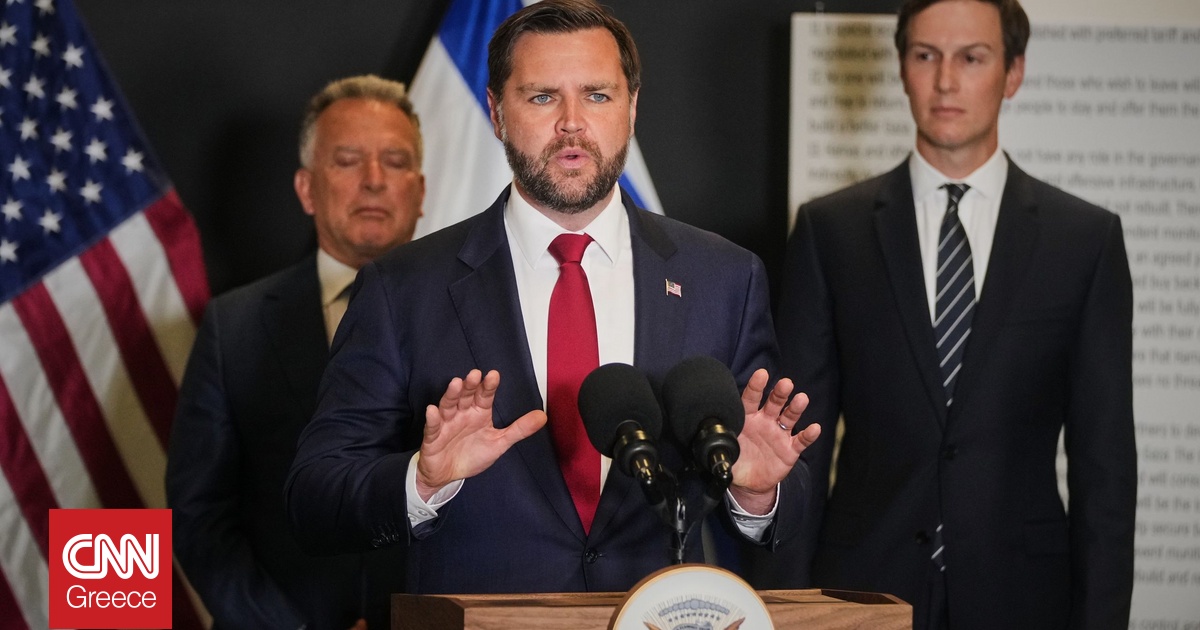 «Δεν θα υπάρξουν αμερικανικά στρατεύματα στο πεδίο στη Γάζα», επιβεβαίωσε ο Βανς, κατά τη διάρκεια της συνέντευξης Τύπου που παραχώρησε παρουσία του Αμερικανού απεσταλμένου Στιβ Γουίτκοφ και του γαμπρού του Αμερικανού προέδρου Τζάρεντ Κούσνερ.