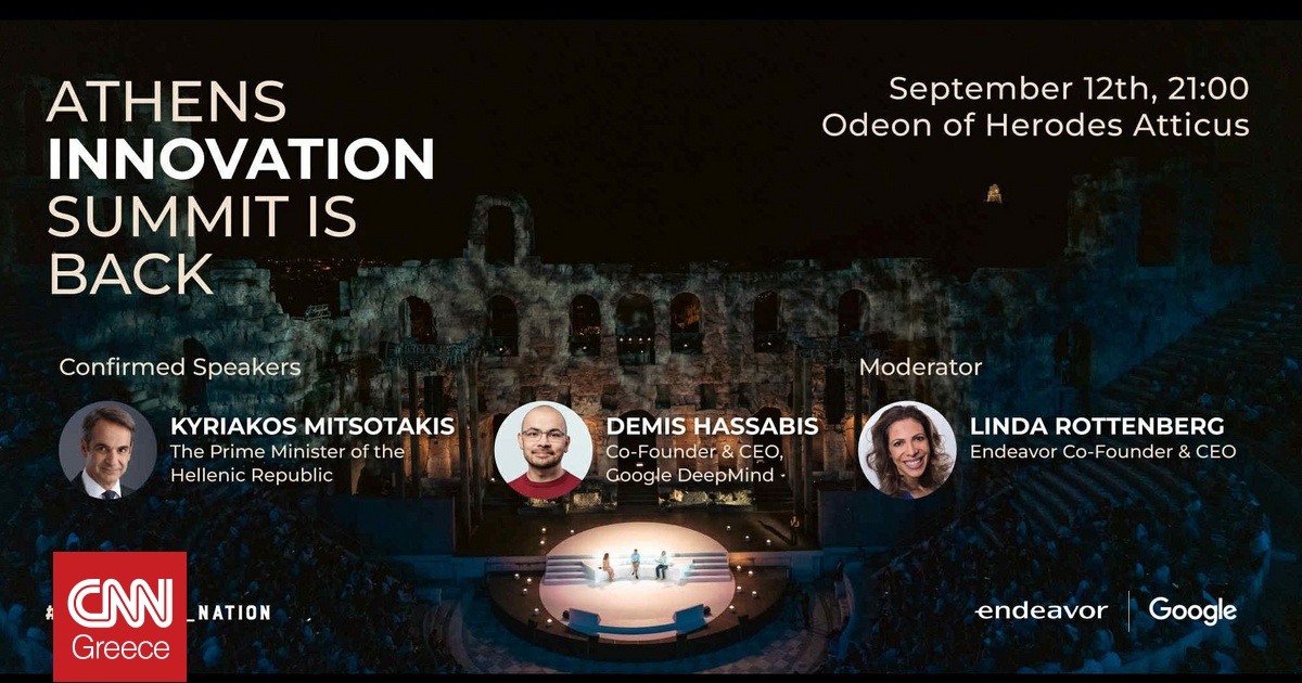 Το Athens Innovation Summit, ο θεσμός που γεννήθηκε από την Endeavor Greece στην Ελλάδα και φιλοδοξεί να εξελιχθεί σε σημείο αναφοράς για την παγκόσμια καινοτομία, επιστρέφει για 2η φορά στις 12 Σεπτεμβρίου στο Ωδείο Ηρώδου Αττικού, φιλοξενώντας μια κορυφαία συζήτηση για το Μέλλον της Τεχνητής Νοημοσύνης, την Ηθική και τη Δημοκρατία.