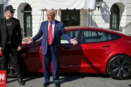 Ο Τραμπ αγοράζει Tesla και πληρώνει «παλιομοδίτικα» με τσεκ προς υποστήριξη του Μασκ