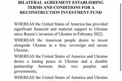 Το έγγραφο της συμφωνίας μεταξύ ΗΠΑ και Ουκρανίας – Επενδυτικό ταμείο για τα 500 δισ. από το Κίεβο