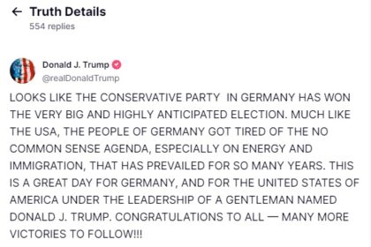 Συγχαρητήρια Τραμπ σε Μερτς: Μεγάλη μέρα για τη Γερμανία και τις ΗΠΑ