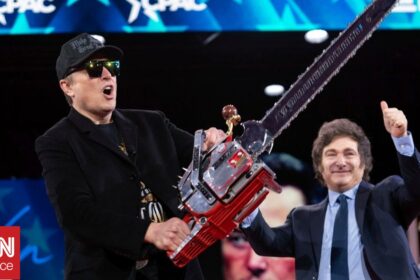 Μασκ σε συνέδριο συντηρητικών: «Αυτό είναι για τη γραφειοκρατία» – Δώρο του Μιλέι το αλυσοπρίονο