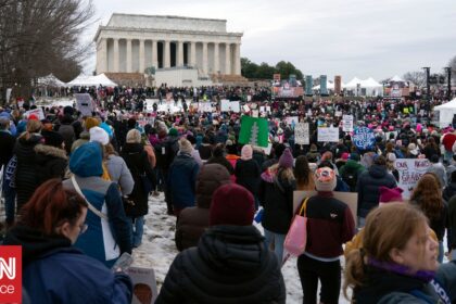 Διαδηλωτές συγκεντρώθηκαν έξω από το Μνημείο του Λίνκολν στην Ουάσιγκτον, το Σάββατο…