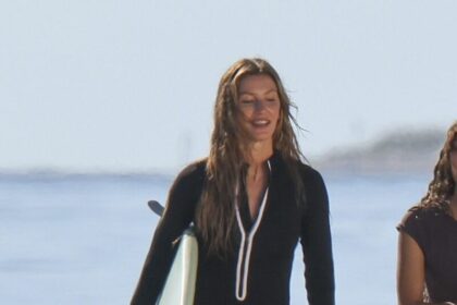 Η Ζιζέλ Μπούντχεν με ολόσωμο μαγιό και σανίδα σερφ 10 μήνες μετά τη γέννηση του γιου της